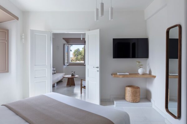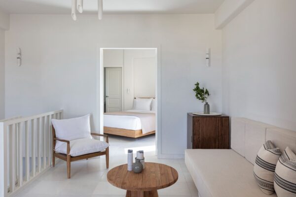 60 τ.μ.Tα 2 επίπεδα της Partial Sea View Maisonette είναι σχεδιασμένα για να προσφέρουν ισορροπία, σε διάλογο με το όμορφο φυσικό τοπίο. Ένα ιδιωτικό σύμπαν 60 m2, με φυσικό στυλ και signature θέα προς τη θάλασσα, η Partial Sea View Maisonette διαθέτει μία επιμελημένη συλλογή από χειροποίητα φωτιστικά και έπιπλα, καθώς και μία χρωματική παλέτα που ενώνει οπτικά το εσωτερικό της με το εξωτερικό περιβάλλον του ξενοδοχείου.